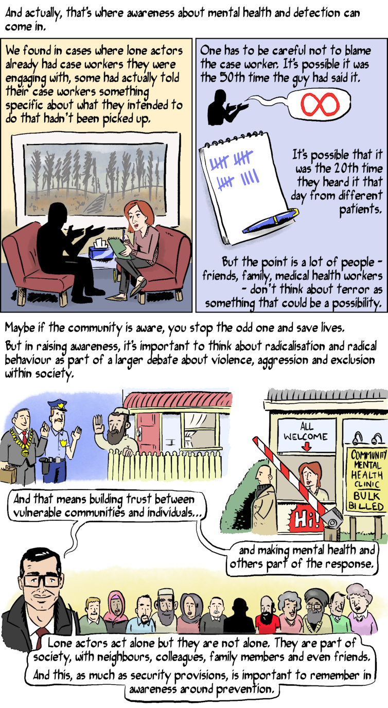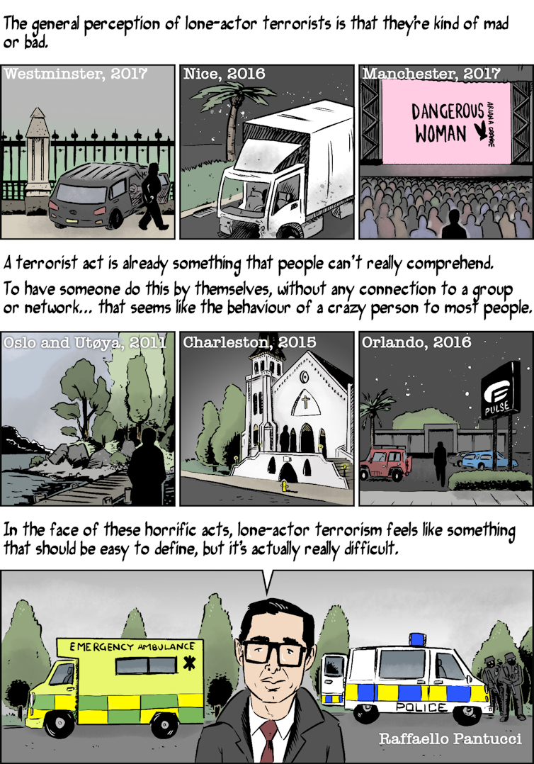 In this comic explainer, Raffaello Pantucci, Associate Fellow at the International Centre for the Study of Radicalisation and Director of International Security Studies at RUSI, explains the theory behind lone-actor terrorism and what we know about lone actors’ effectiveness, motives and behaviours that could help us to better understand and disrupt future attacks.